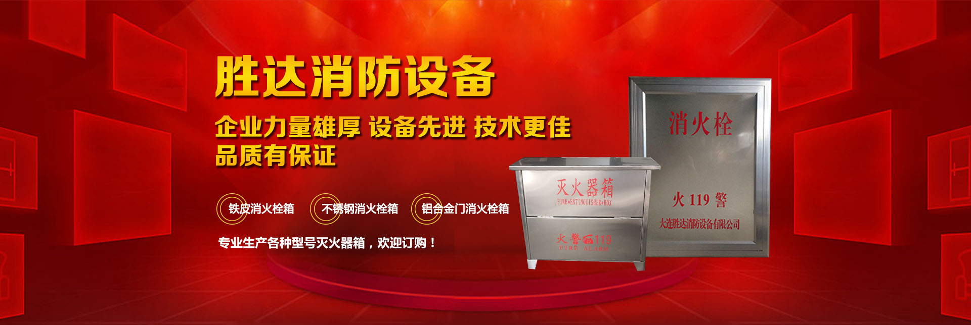 大連勝達(dá)消防設(shè)備有限公司本公司企業(yè)力量雄厚、設(shè)備先進(jìn),生產(chǎn)的所有消防產(chǎn)品均符合國(guó)家GB14561—J標(biāo)準(zhǔn),品質(zhì)有保證。我公司地理位置優(yōu)越,位于大連市甘井子區(qū)西北路847號(hào)交通便捷,公司專業(yè)生產(chǎn)各種型號(hào)滅火器箱、消火栓箱、鐵皮消火栓箱、不銹鋼消火栓箱、鋁合金門消火栓箱。消火栓箱系列產(chǎn)品,全部按照國(guó)家標(biāo)準(zhǔn)和行業(yè)標(biāo)準(zhǔn)進(jìn)行生產(chǎn),并通過國(guó)家合格鑒定,得到了國(guó)家固定滅火系統(tǒng)和耐火構(gòu)件質(zhì)量監(jiān)督檢驗(yàn)中心的產(chǎn)品認(rèn)證和產(chǎn)品形式報(bào)告書。我們的消火栓箱系列產(chǎn)品具有外形美觀、結(jié)構(gòu)先進(jìn)、開啟靈活、使用可靠、消火應(yīng)急燈具標(biāo)志清晰、光色好、功耗低、使用壽命長(zhǎng)、安裝使用簡(jiǎn)便,可廣泛應(yīng)用于高層建筑和工業(yè)等一些公關(guān)場(chǎng)所使用。